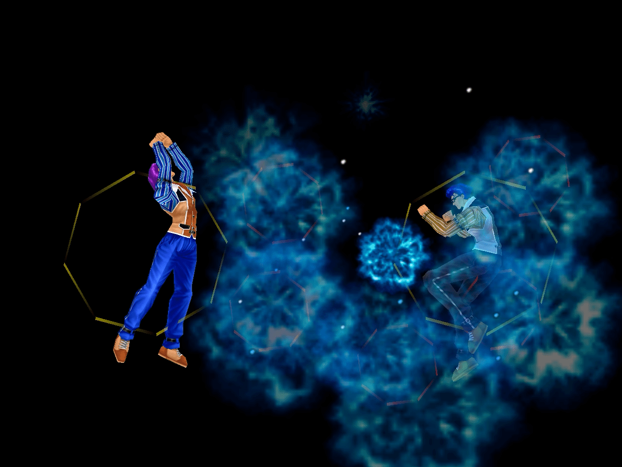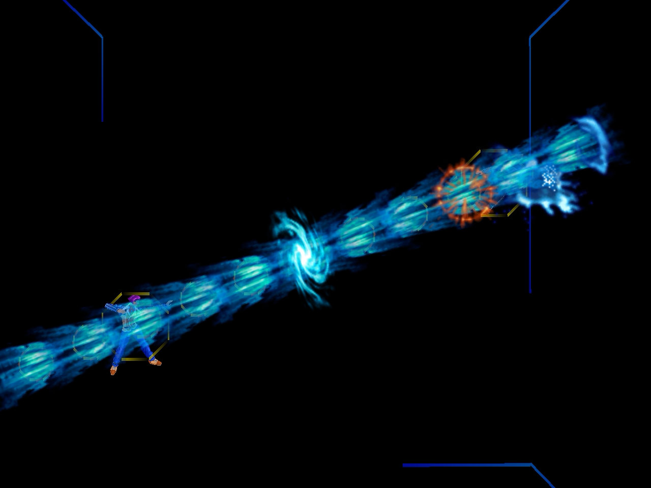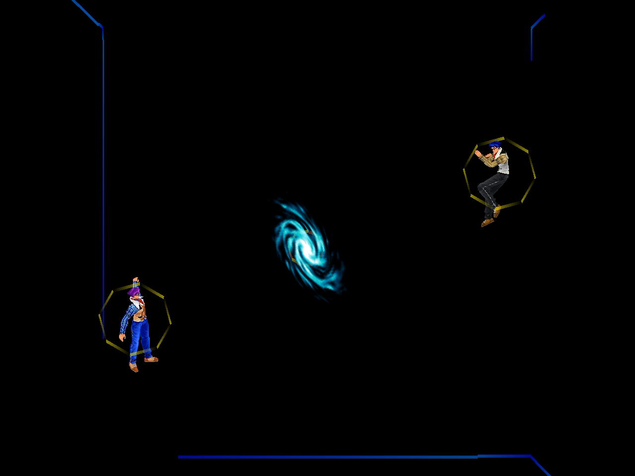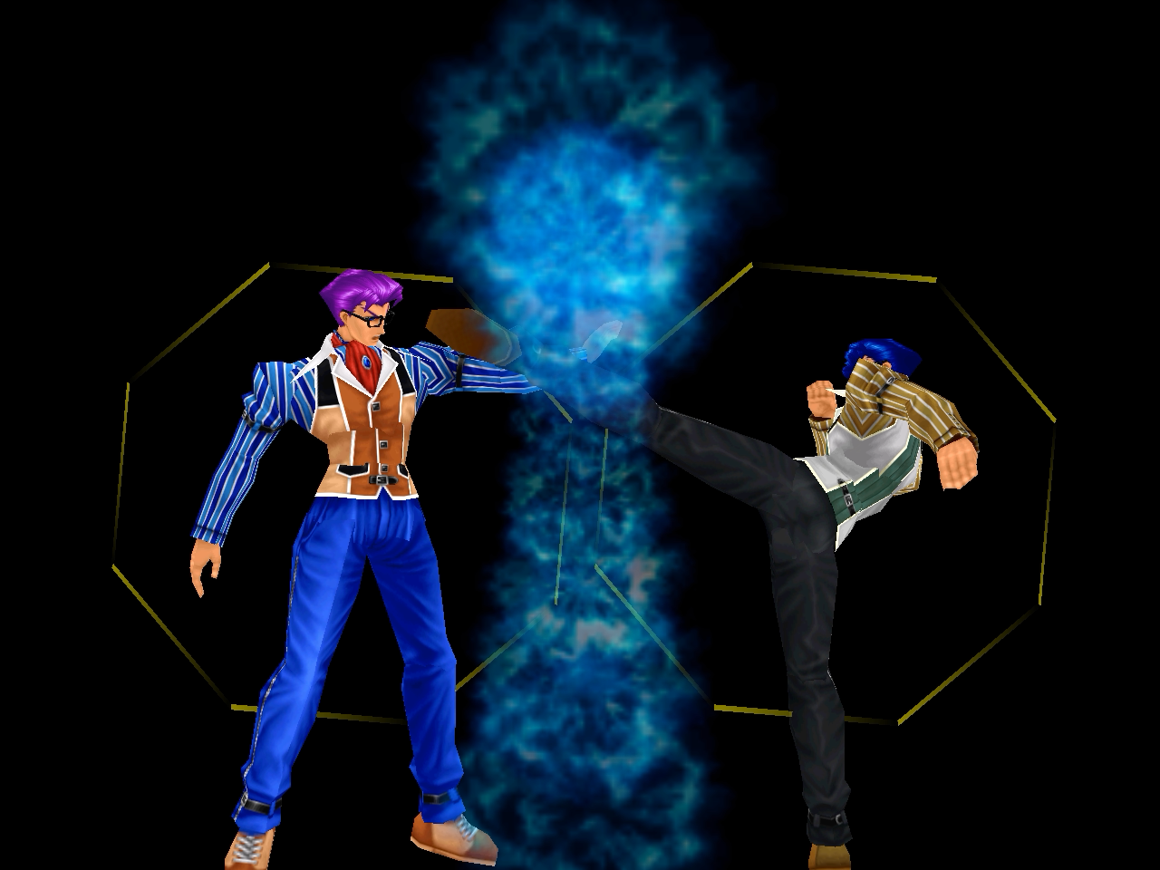 足先から螺旋状の水流を蹴り飛ばす強ショット。発生そこそこ早め、弾速速め、硬直長め。特徴は台形の当たり判定が徐々に大きくなっていくこと。それ以外は癖もなく使い易い部類で、牽制や連続技に重宝するカルロの主力技のひとつ。