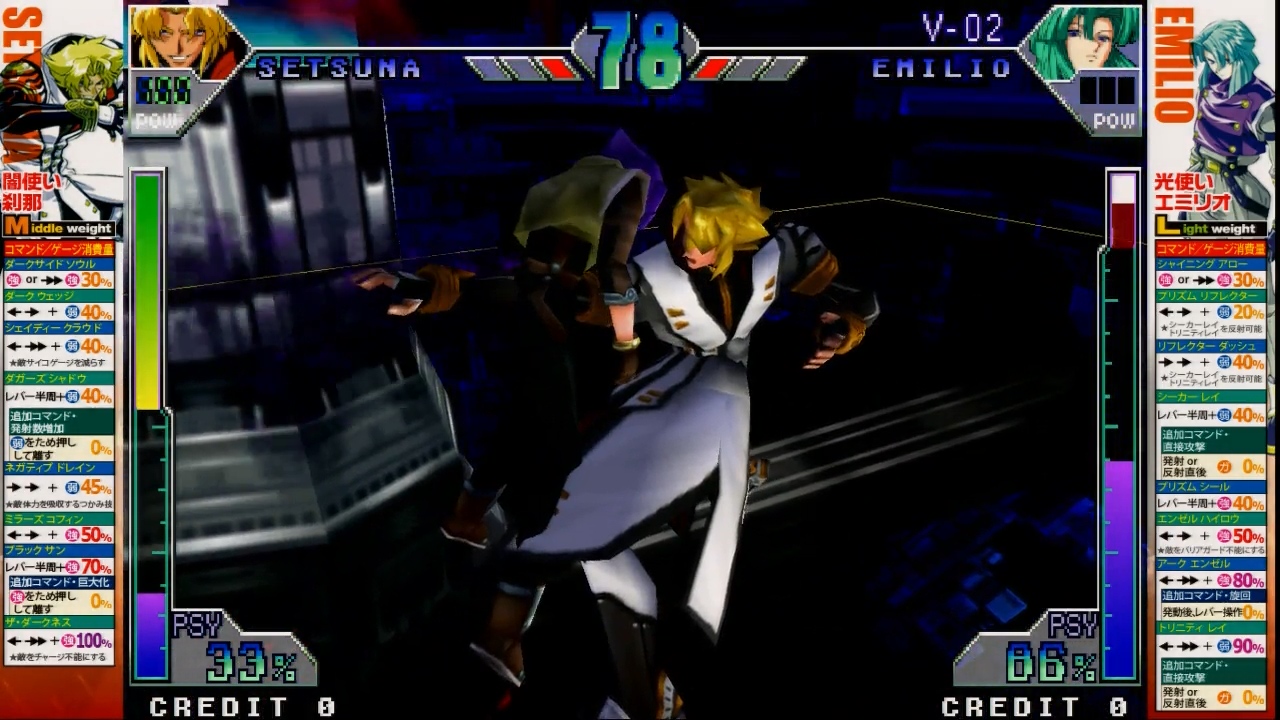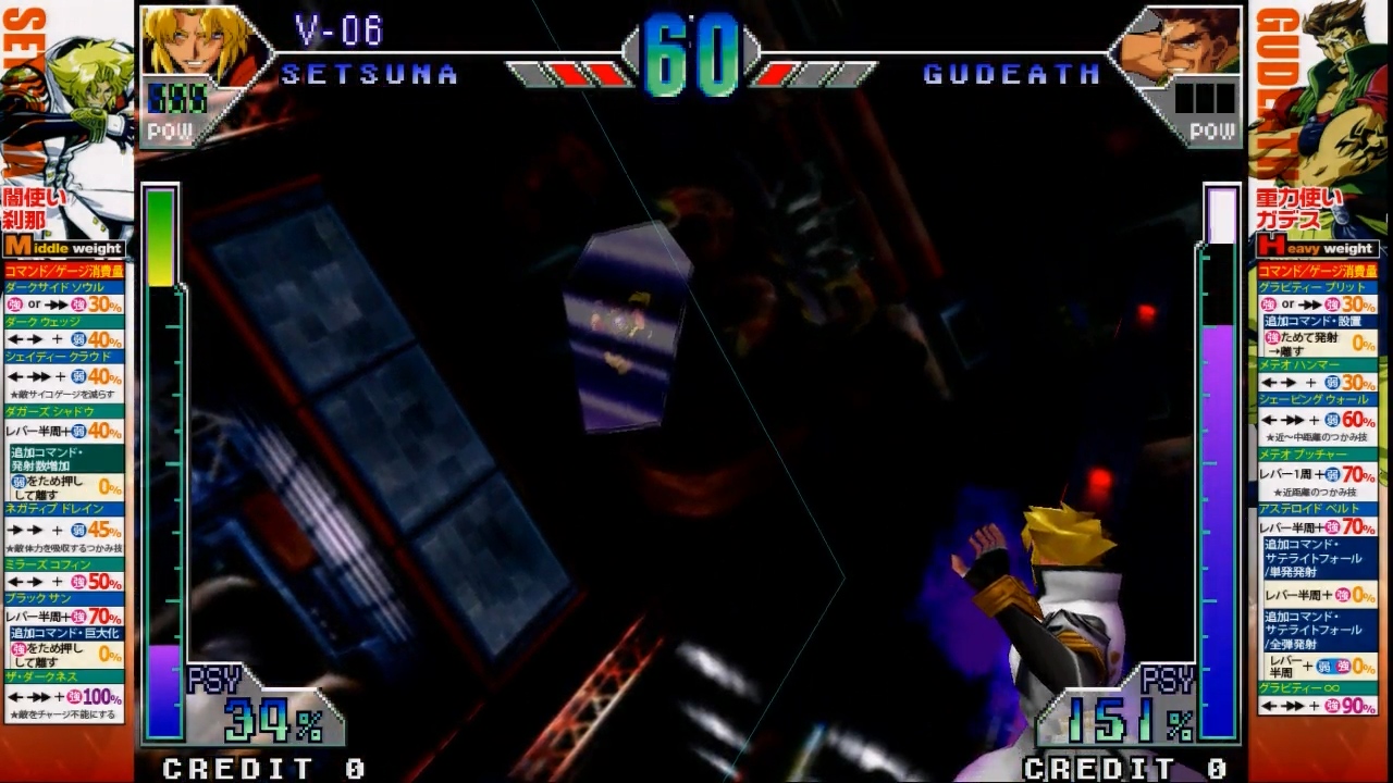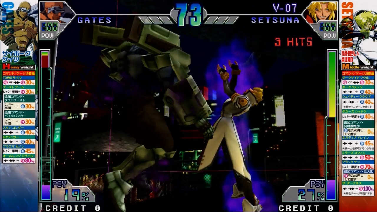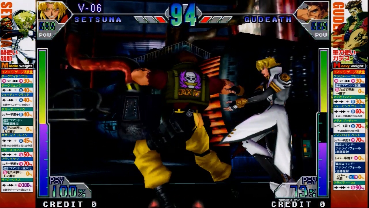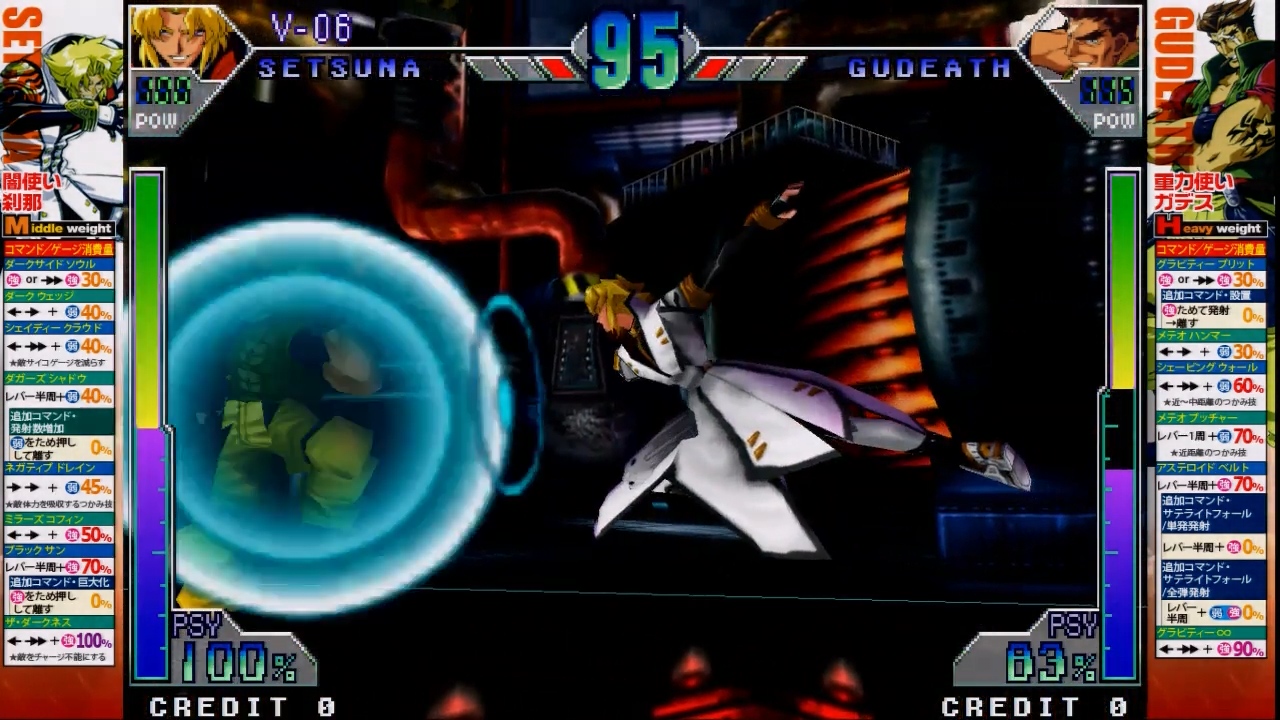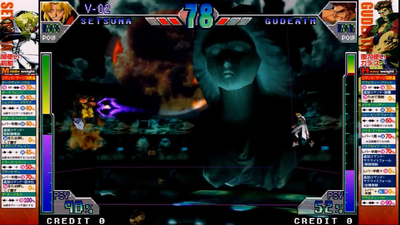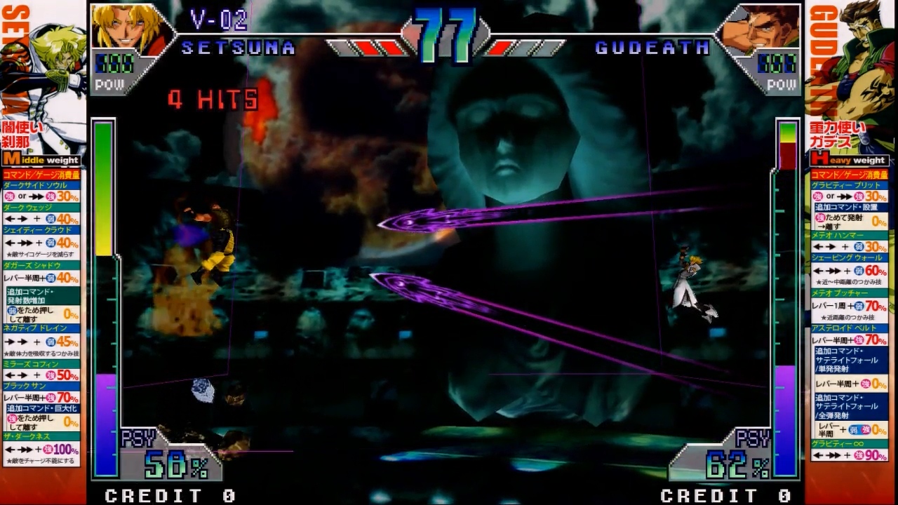 | その他 | 与えたダメージの3/4のライフを吸収し回復。 相手はレバー+ボタン連打で被ダメージを軽減可能。 |