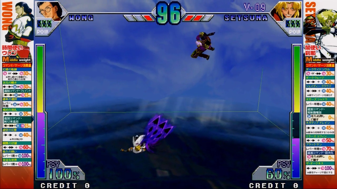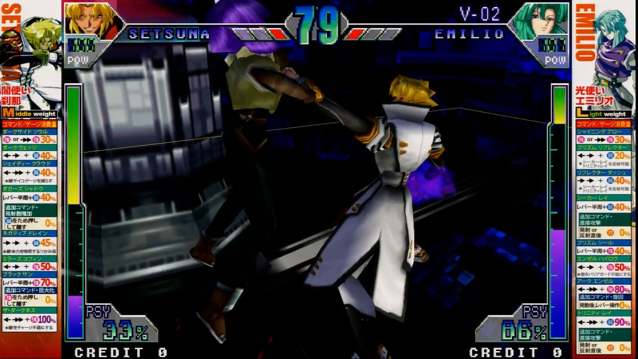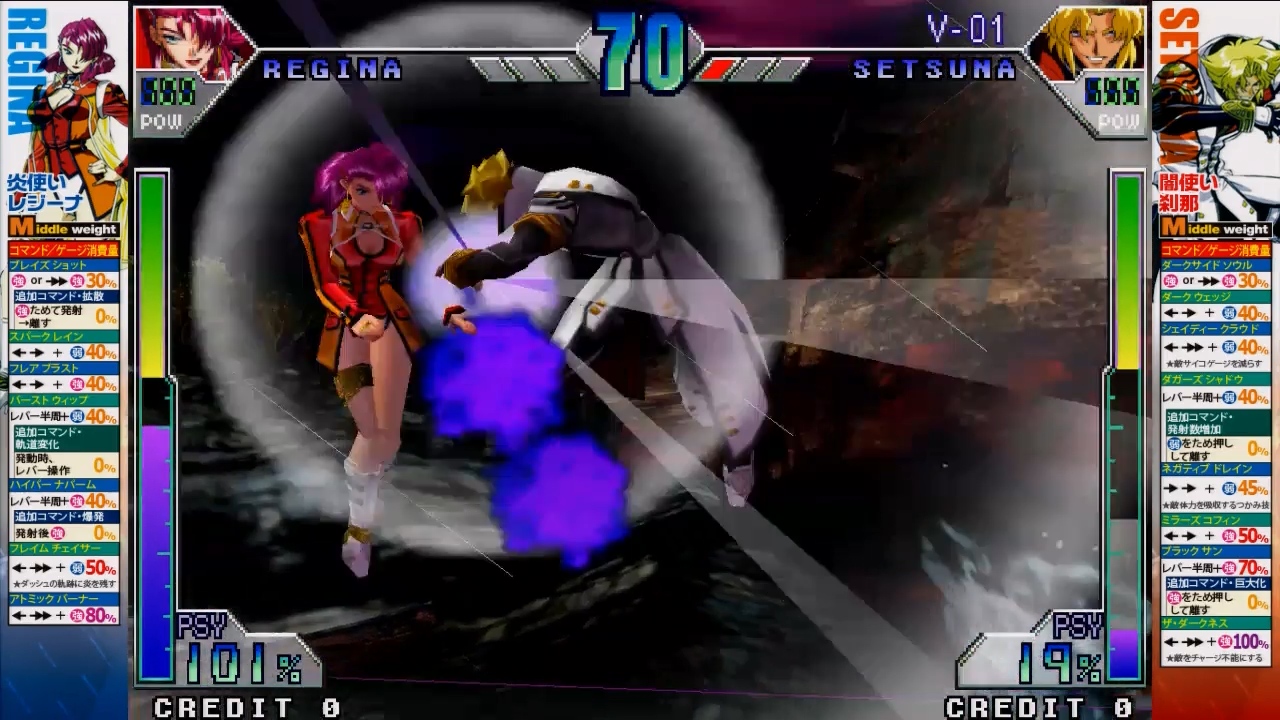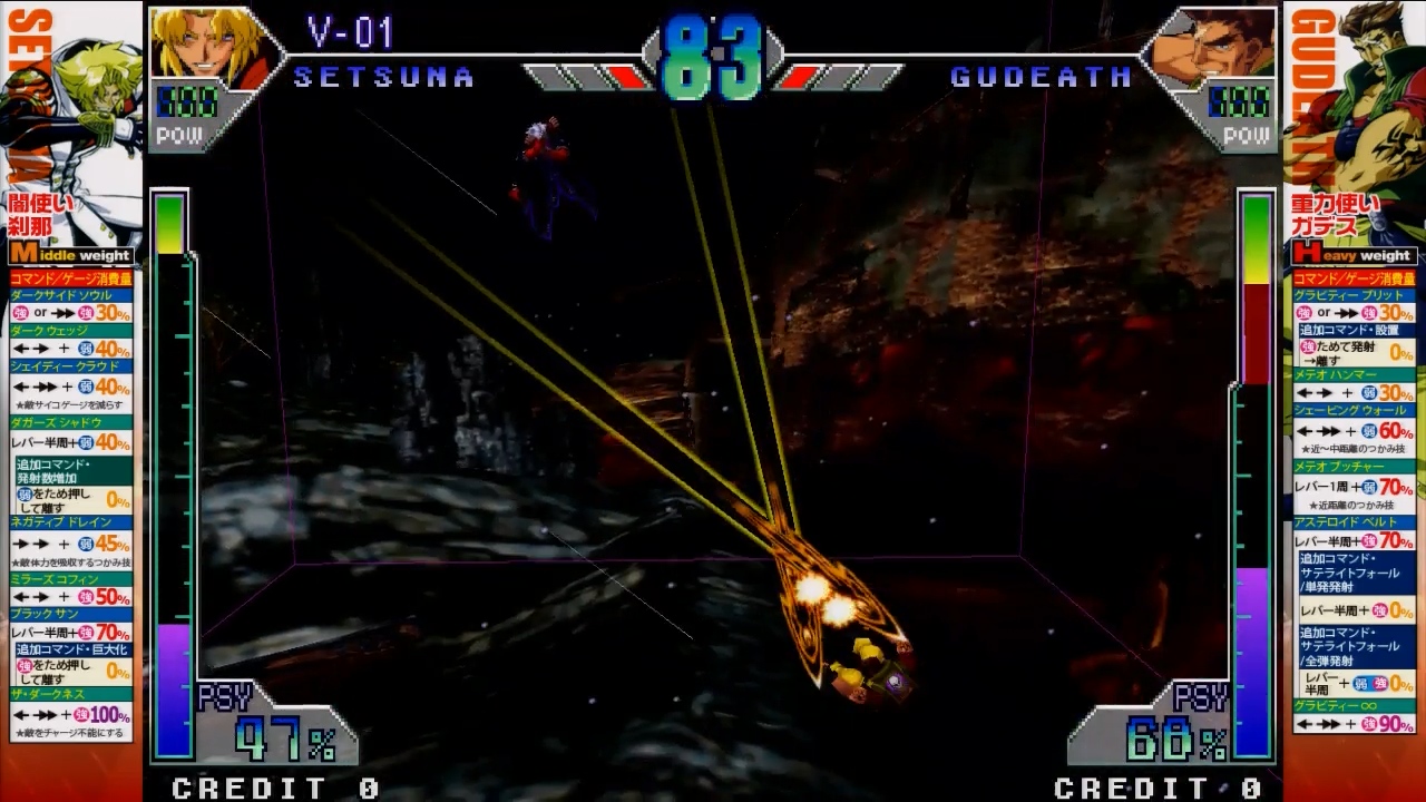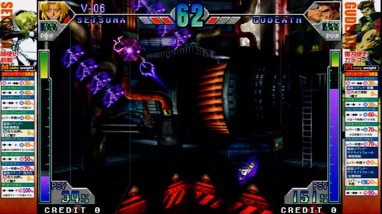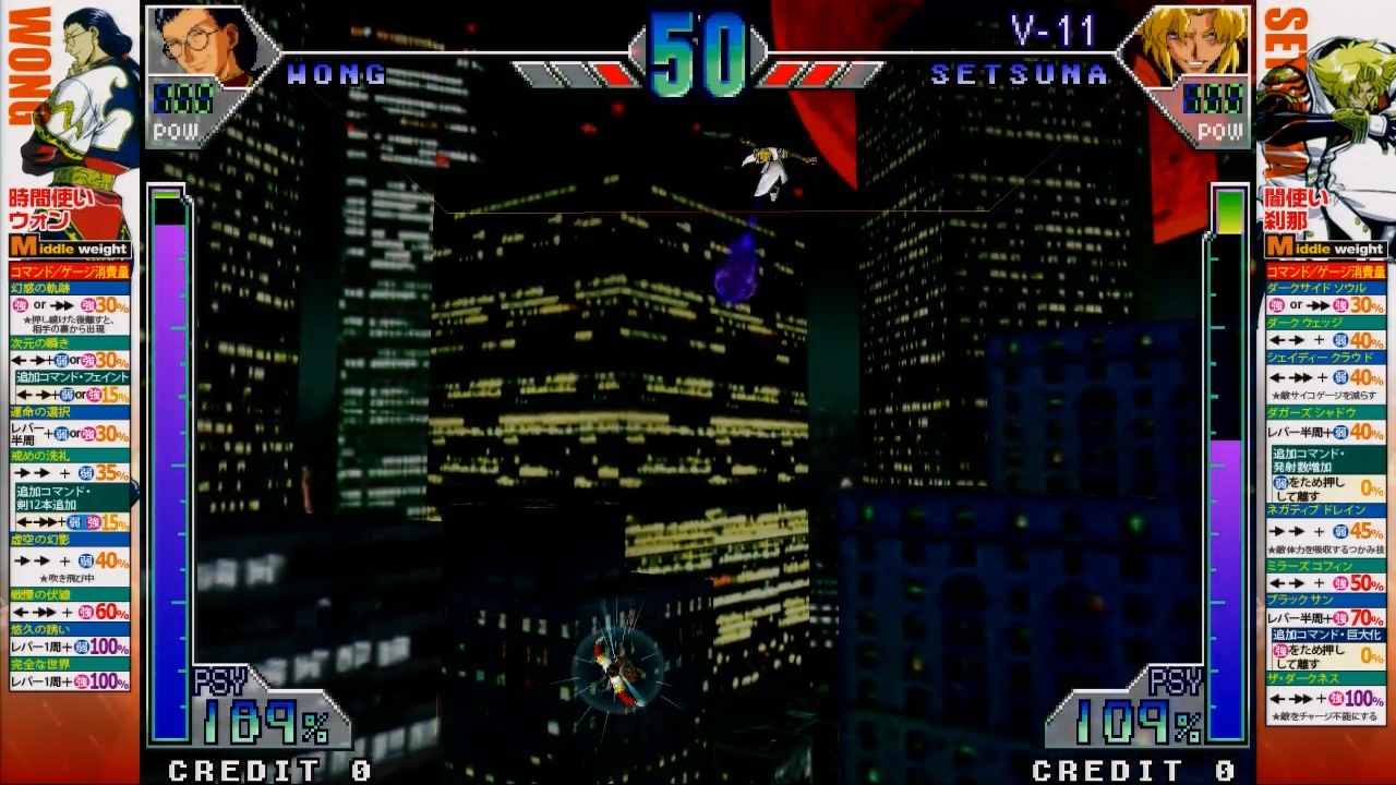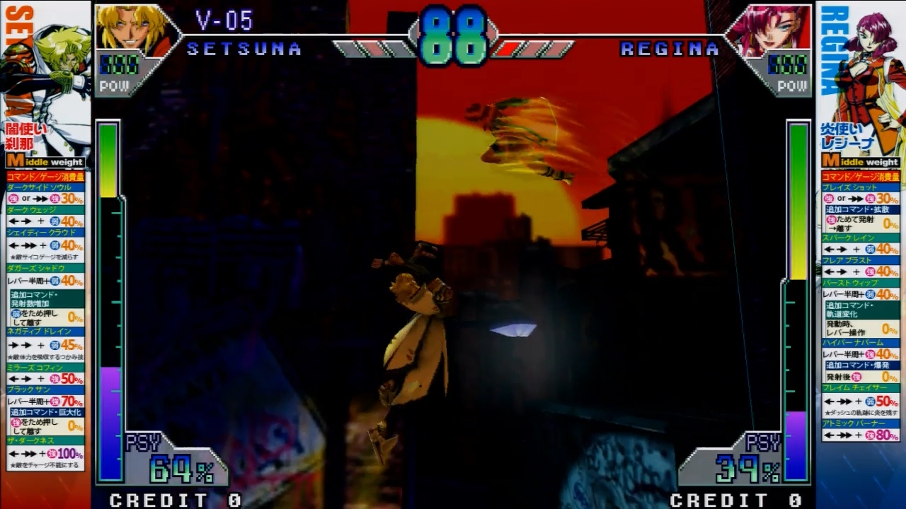 | その他 | 与えたダメージの3/4のライフを吸収し回復。 相手はレバー+ボタン連打で被ダメージを軽減可能。 |