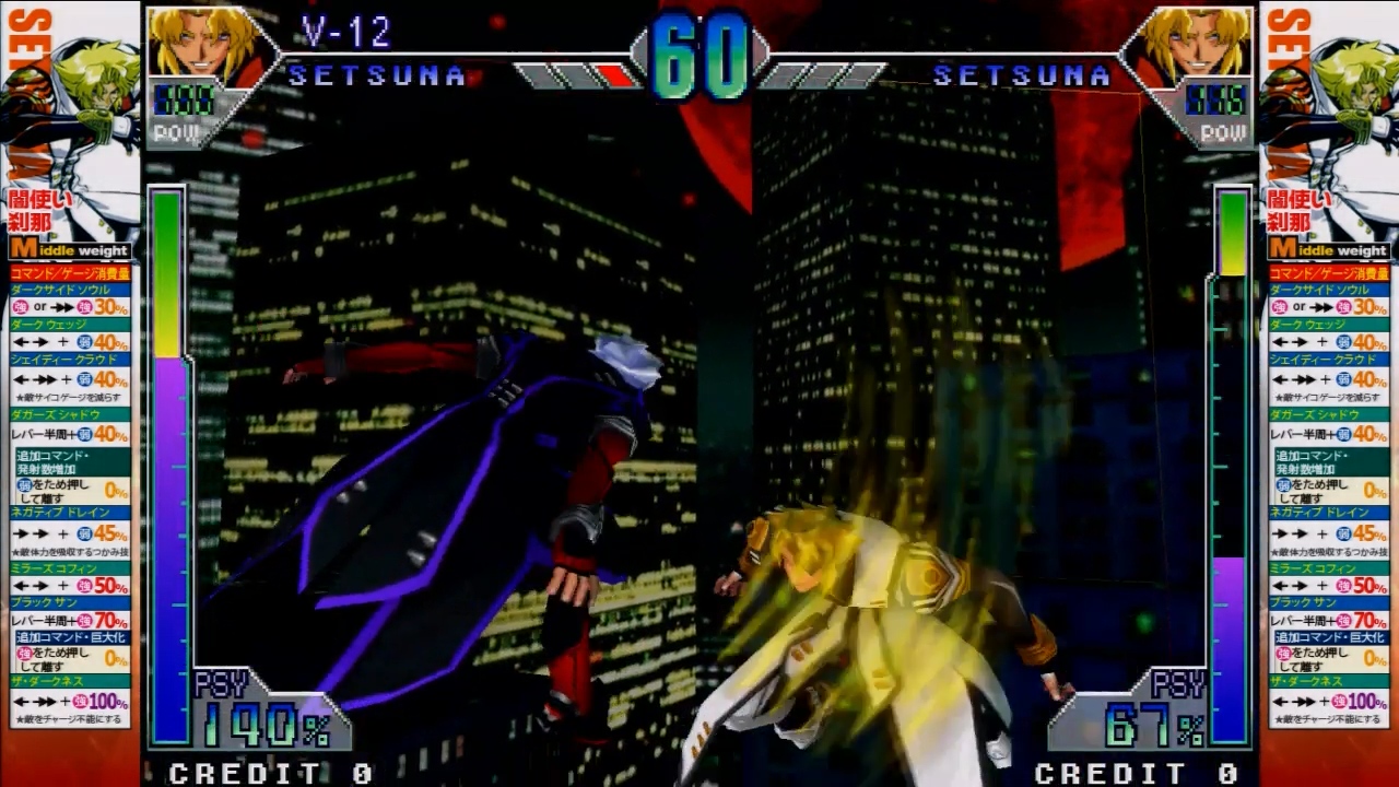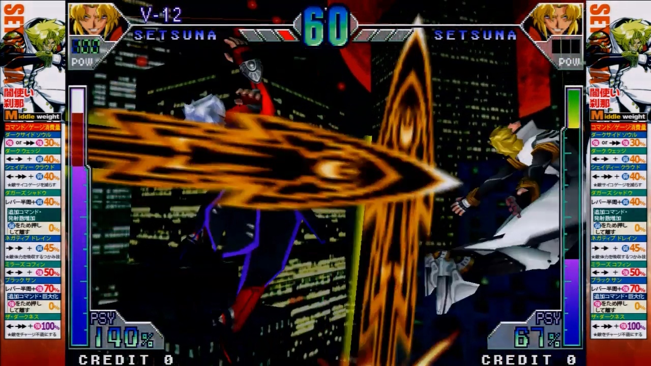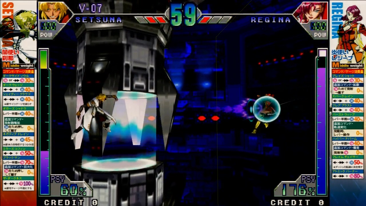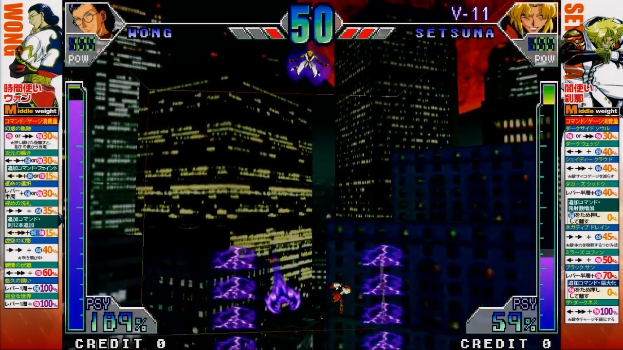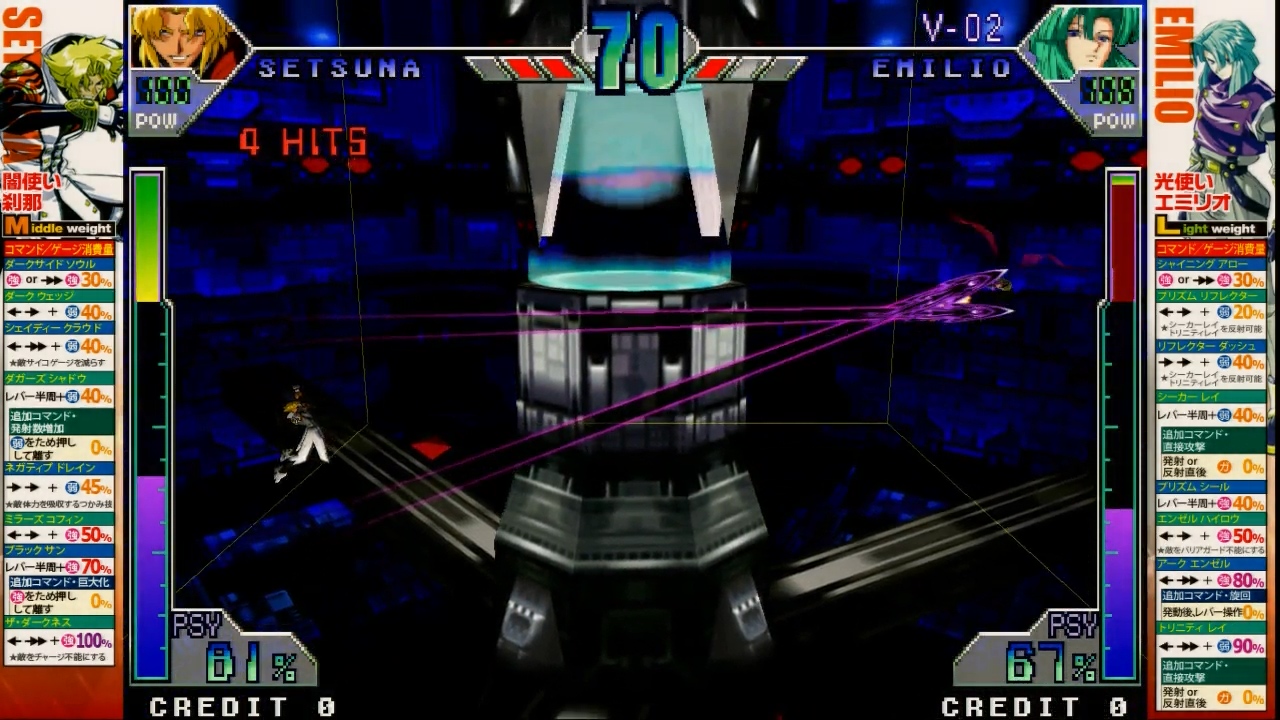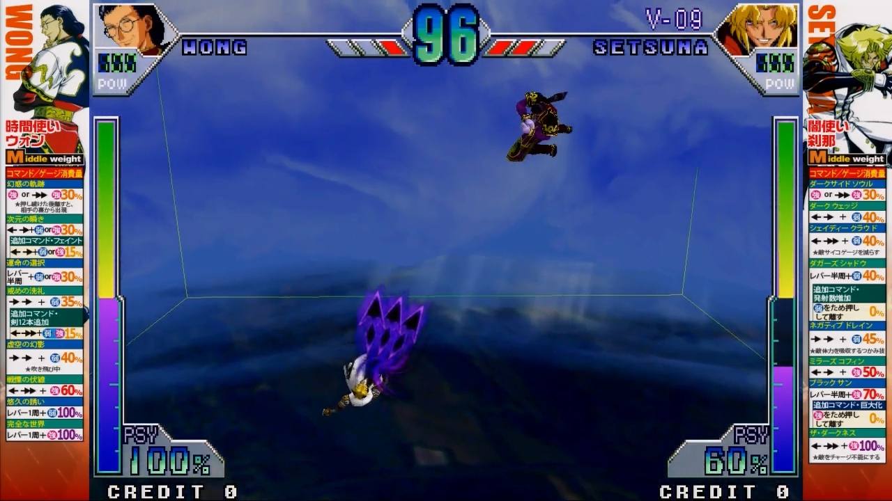 | その他 | 与えたダメージの3/4のライフを吸収し回復。 相手はレバー+ボタン連打で被ダメージを軽減可能。 |