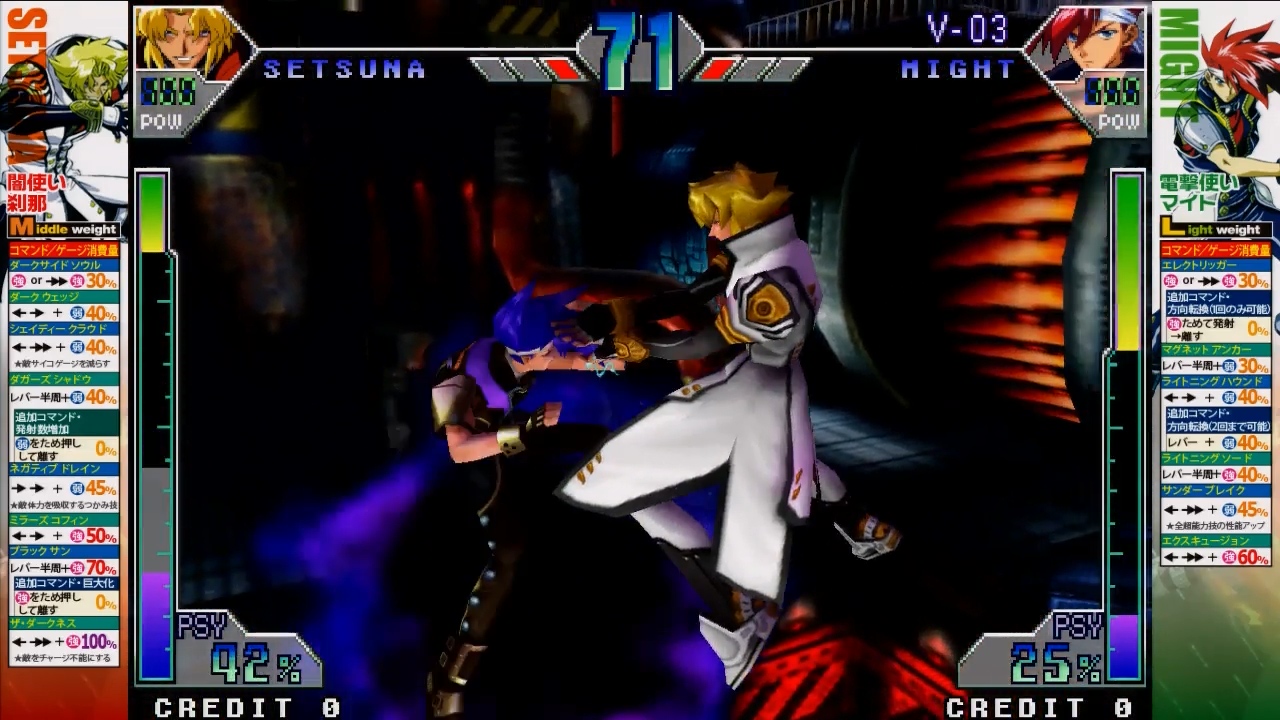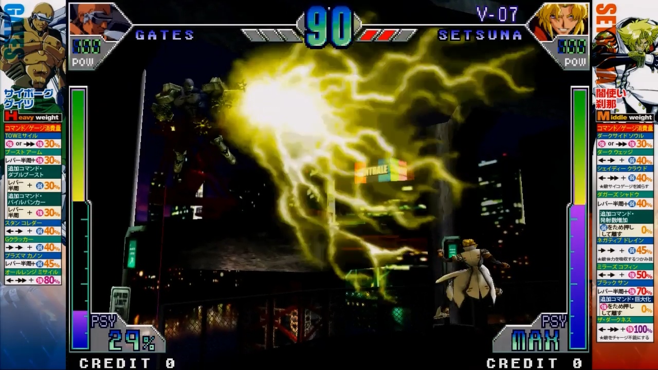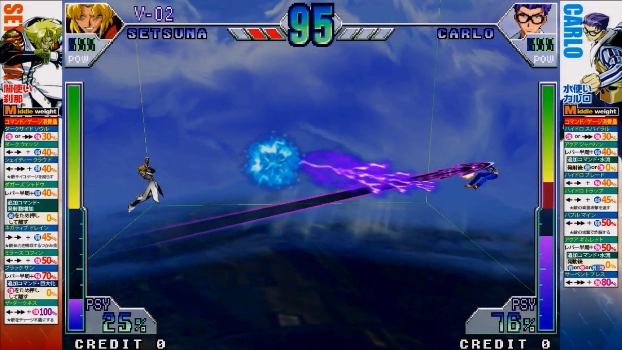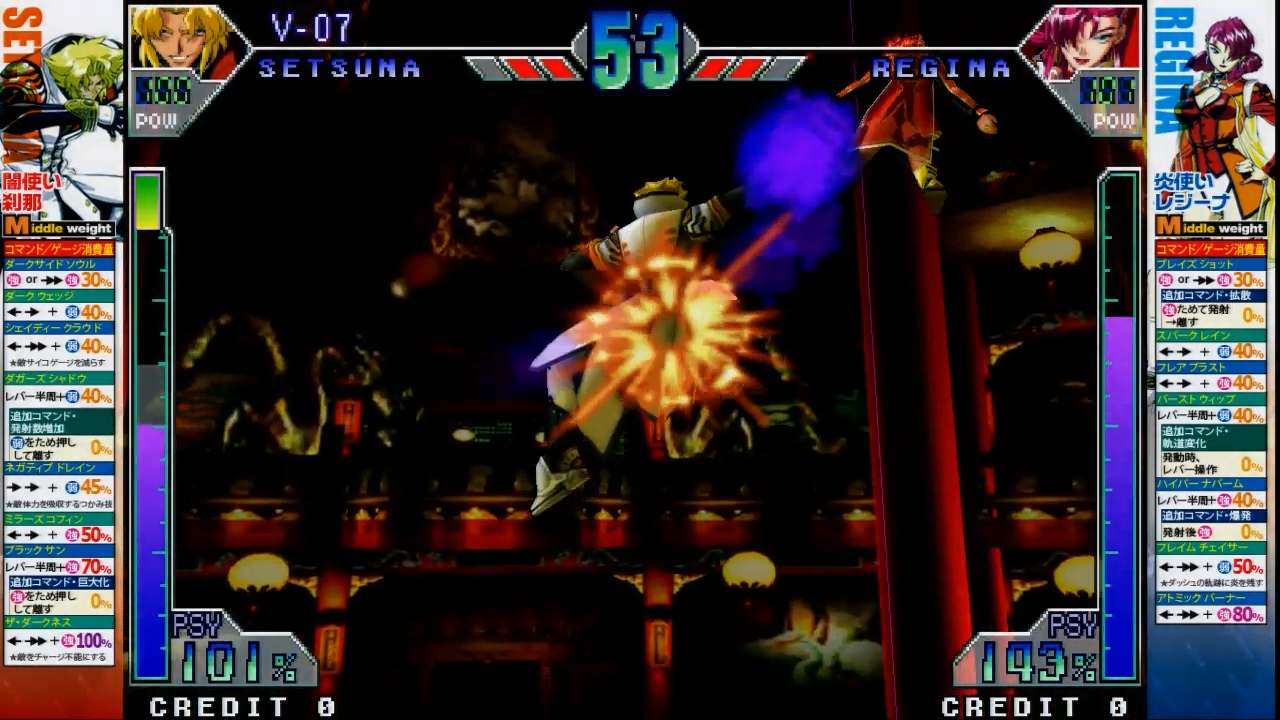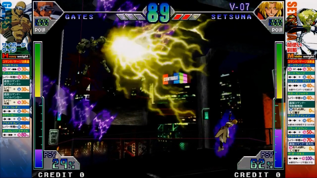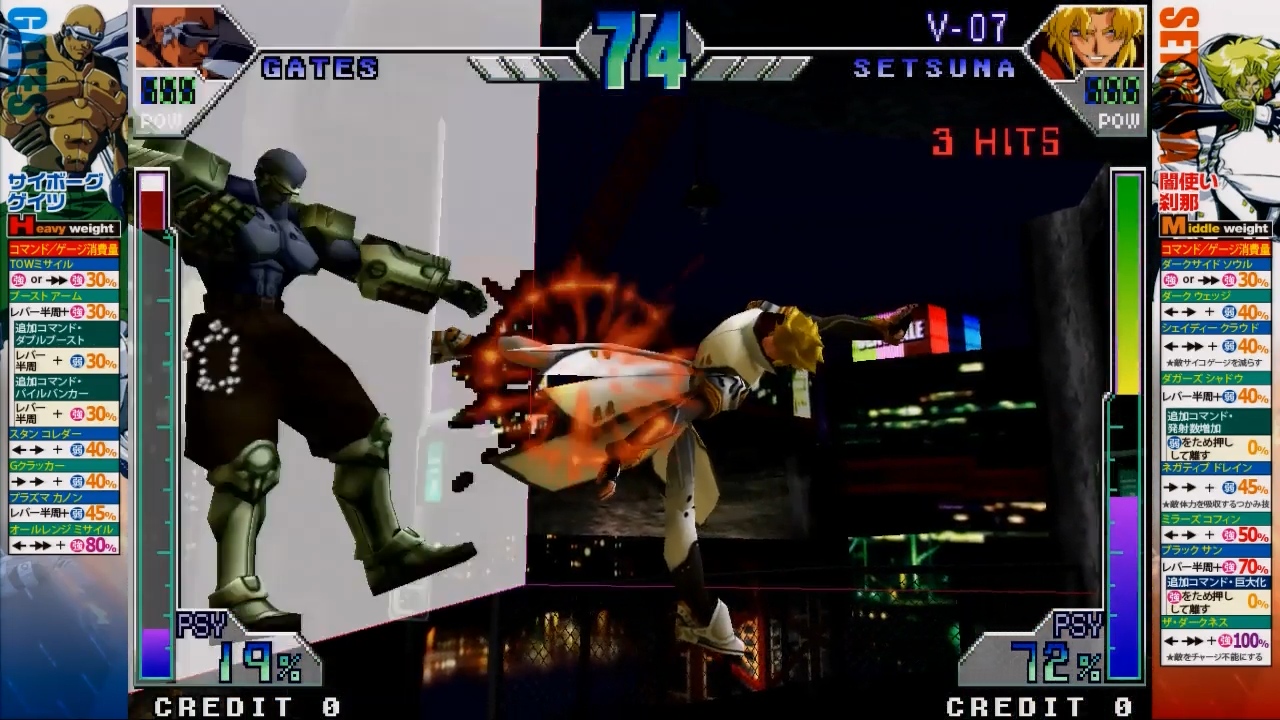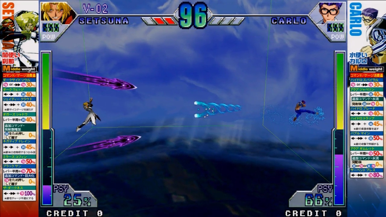 | その他 | 与えたダメージの3/4のライフを吸収し回復。 相手はレバー+ボタン連打で被ダメージを軽減可能。 |