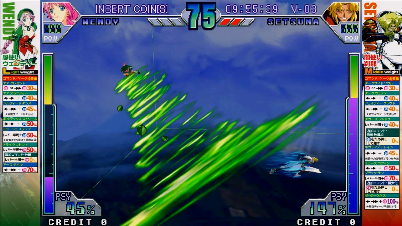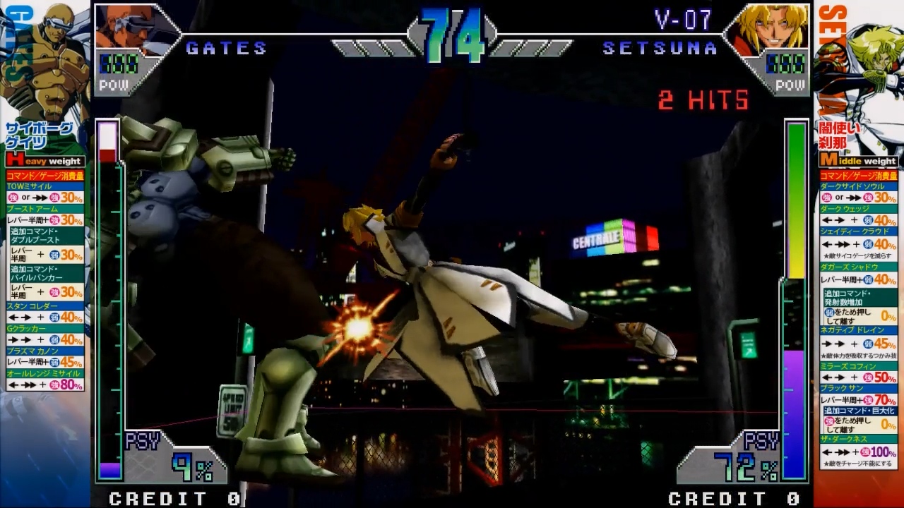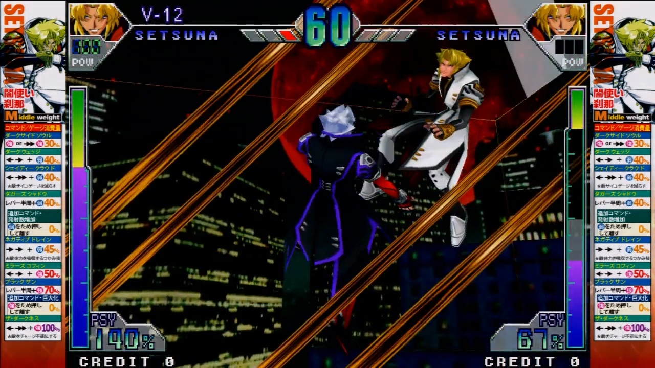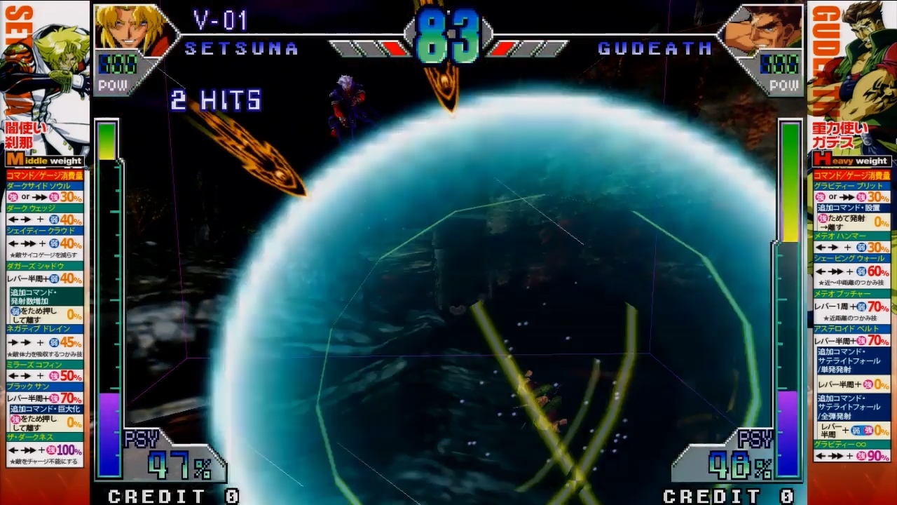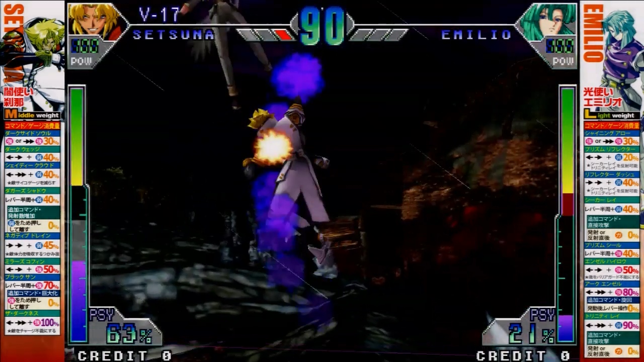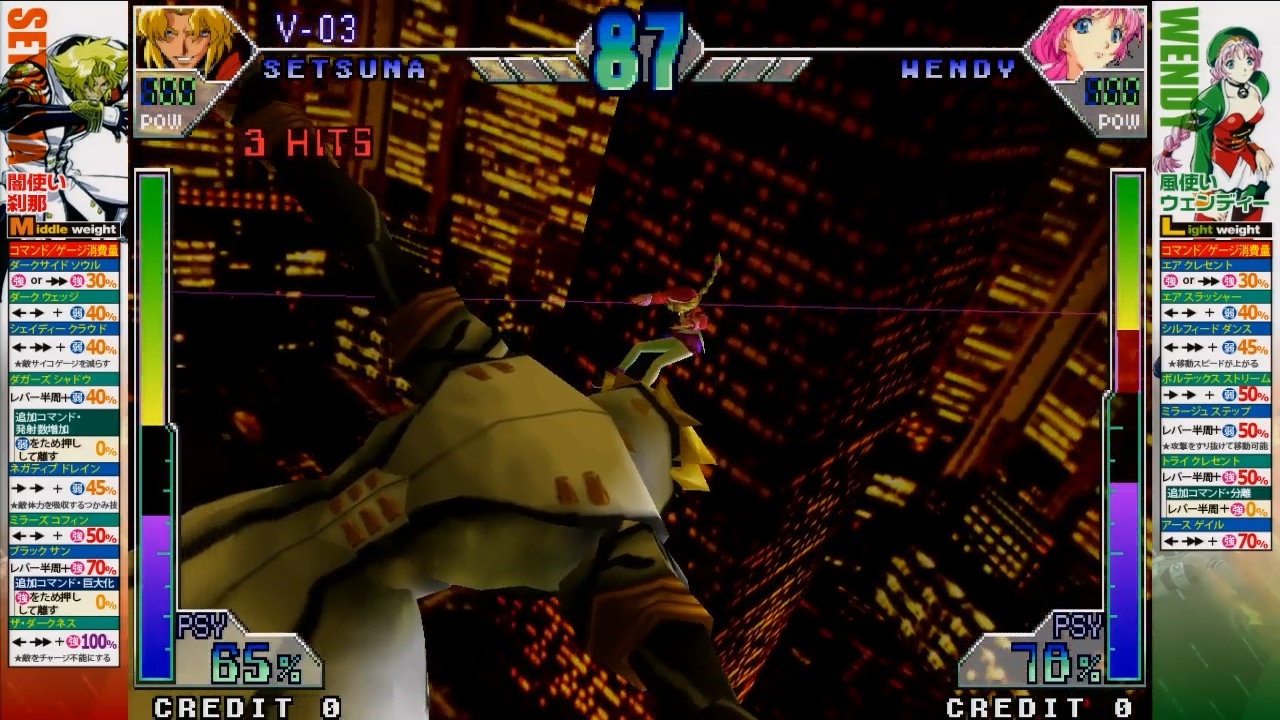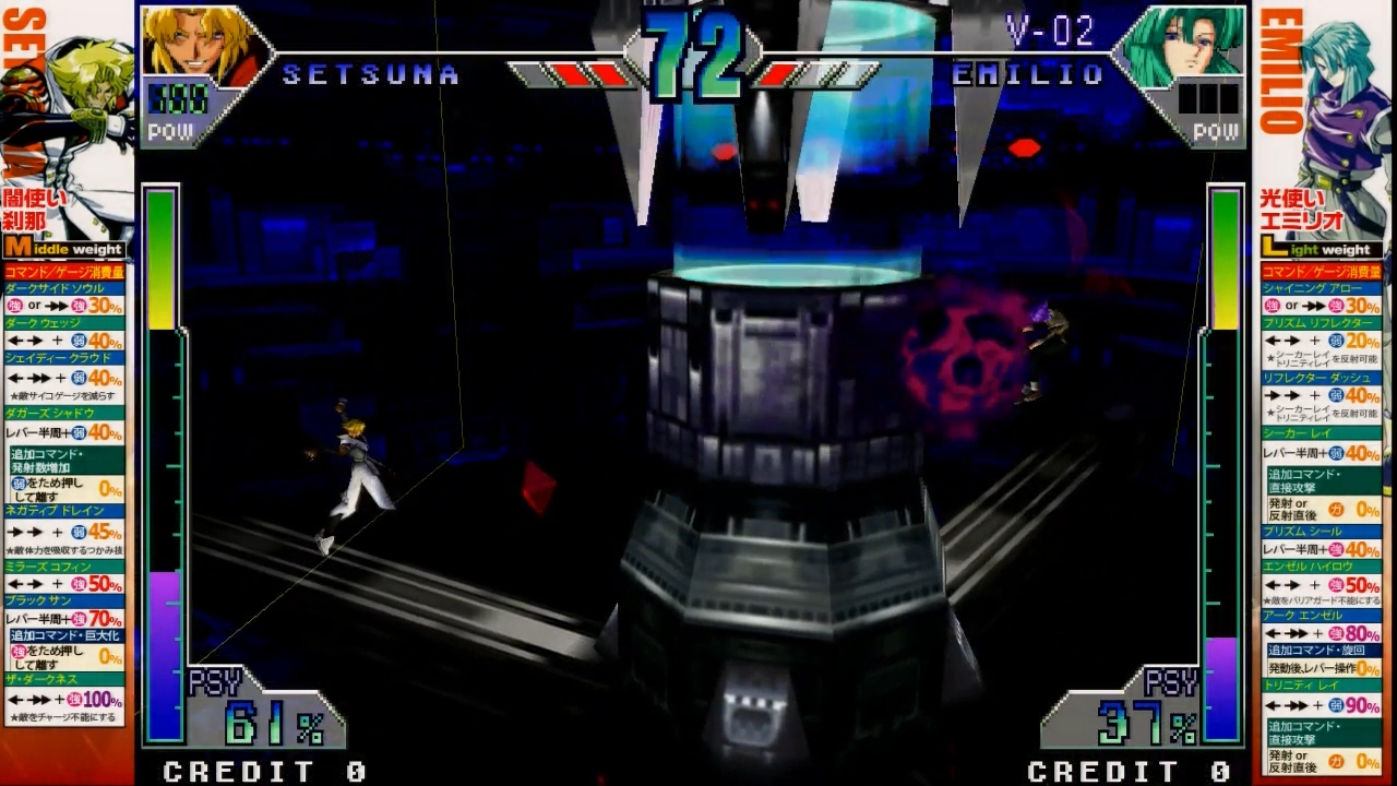 | その他 | 与えたダメージの3/4のライフを吸収し回復。 相手はレバー+ボタン連打で被ダメージを軽減可能。 |
