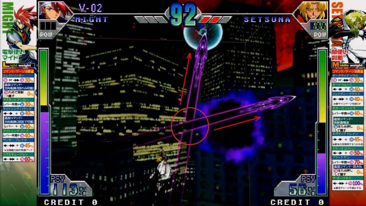 この技の最大の特徴は「あらゆる飛び道具・放射系の超能力技を吸収、ないし貫通する」にあります。 しかし発射までに最短でも34Fもの時間がかかり、相手が超能力技を撃ったのを見てからではまず間に合いません。 |