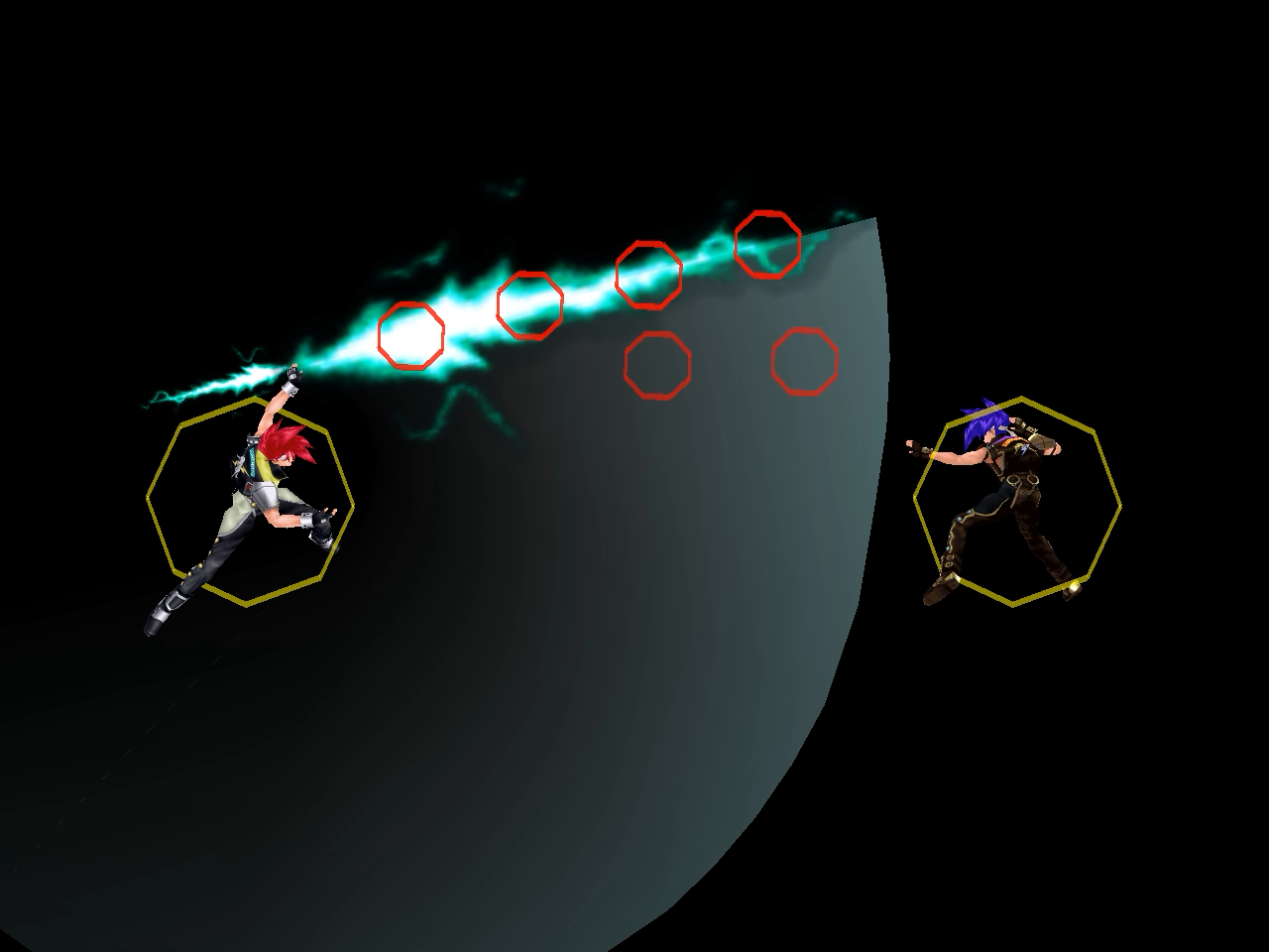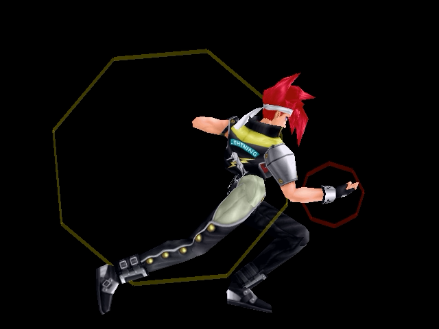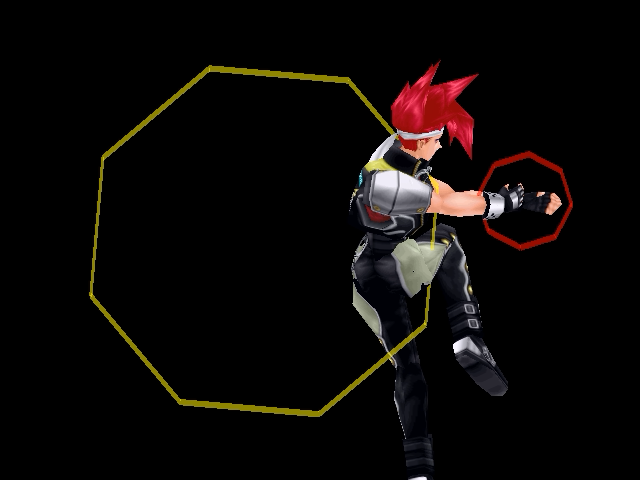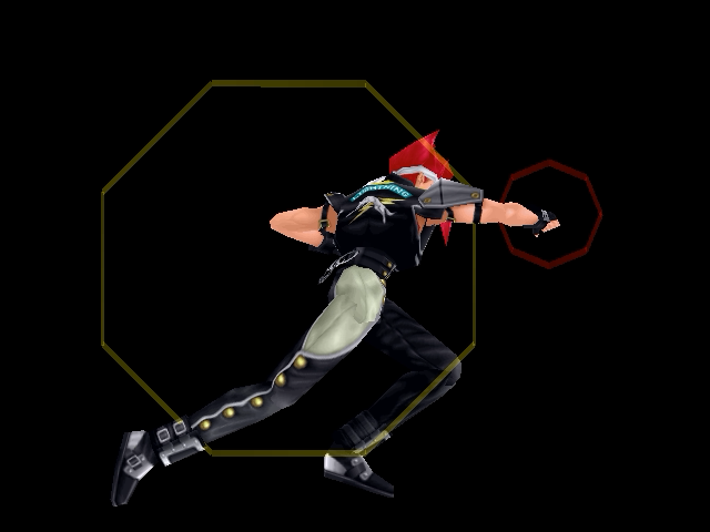 ・左向き時は、発生から数フレームは剣の振り幅が小さく、正面に判定が来るのが右向き時よりも遅くなる。1P席でのアンカーソードが方向限定なのはこのせい。正面に判定が出るのが遅くなるのはデメリットではあるが、ガードされた時の不利フレームがその分減るというメリットもある。 |