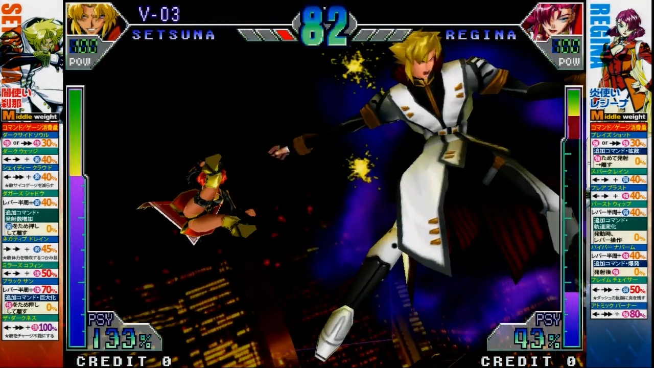 この技の最大の特徴は「あらゆる飛び道具・放射系の超能力技を吸収、ないし貫通する」にあります。 全超能力技中、唯一5方向(前方・斜め2方向・水平2方向)への方向撃ち分けが可能なうえに発射時に相手の位置をサーチする能力を備えているので、実質全方位への射出が可能です。 溜めあり/なし時の撃ち分け方法や、溜めあり時に相手方向へ回頭するのに1Fかかるのもダガーズシャドウと同様ですが、こちらは溜めの解除から発射までが9/10Fと早め。 最後に、その他に記載した例外についての注意点をまとめます。