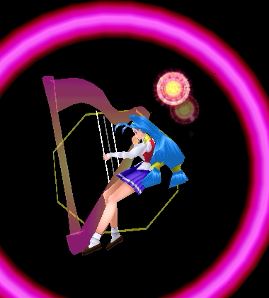 普段は身辺に浮遊する音珠を飛ばす。(プレリュードキーのコマンド入力で音塊を設置可能)