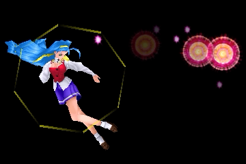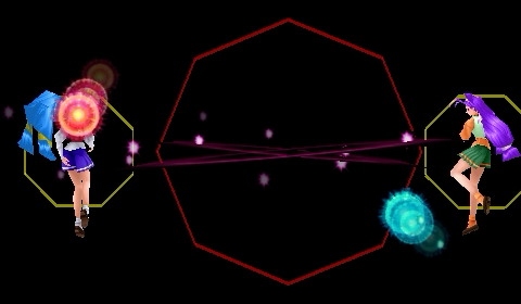 共鳴した音塊が更に音塊に接触すると、持続時間、共鳴のサイズは引き継ぐが、移動速度が倍の30/Fとなる。