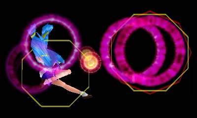 共鳴の移動速度は15/F。共鳴した音塊は超能力技が接した点から音珠の中心に向くベクトル方向に移動する。